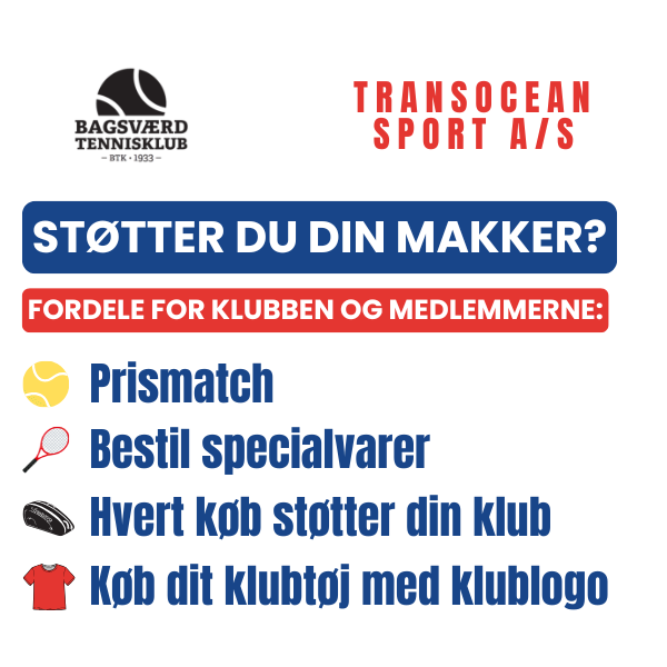 Transocean Sport er en specialbutik indenfor tennis, badminton, squash og padel. Vi har eksisteret siden 1976 og vores mærkesag har alle dage været at levere sublim service i øjenhøjde. Vores fysiske butik er placeret på Ulrikkenborg Allé 38, 2800 Kgs. Lyngby i et roligt område med gode parkeringsmuligheder, under 5 minutter fra Lyngby Station.